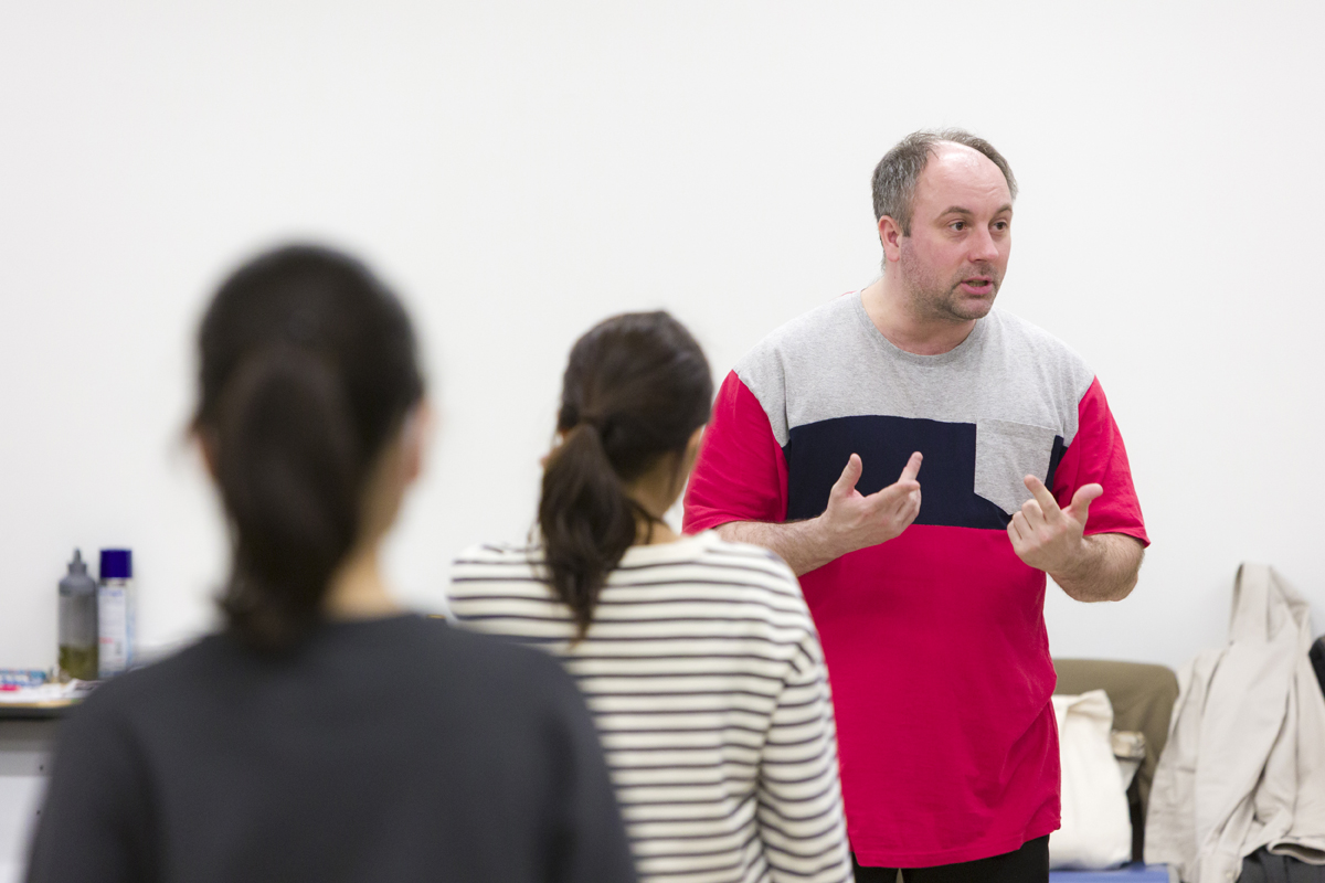 2020年度はシェンタリンスキー教授とニジェリスコイ氏のお二人に直接指導を受け、ロシアの大学での俳優教育に携わってこられた横尾圭亮氏を講師にお招きして「ロシア演劇の俳優術」ワークショップを開催しました。